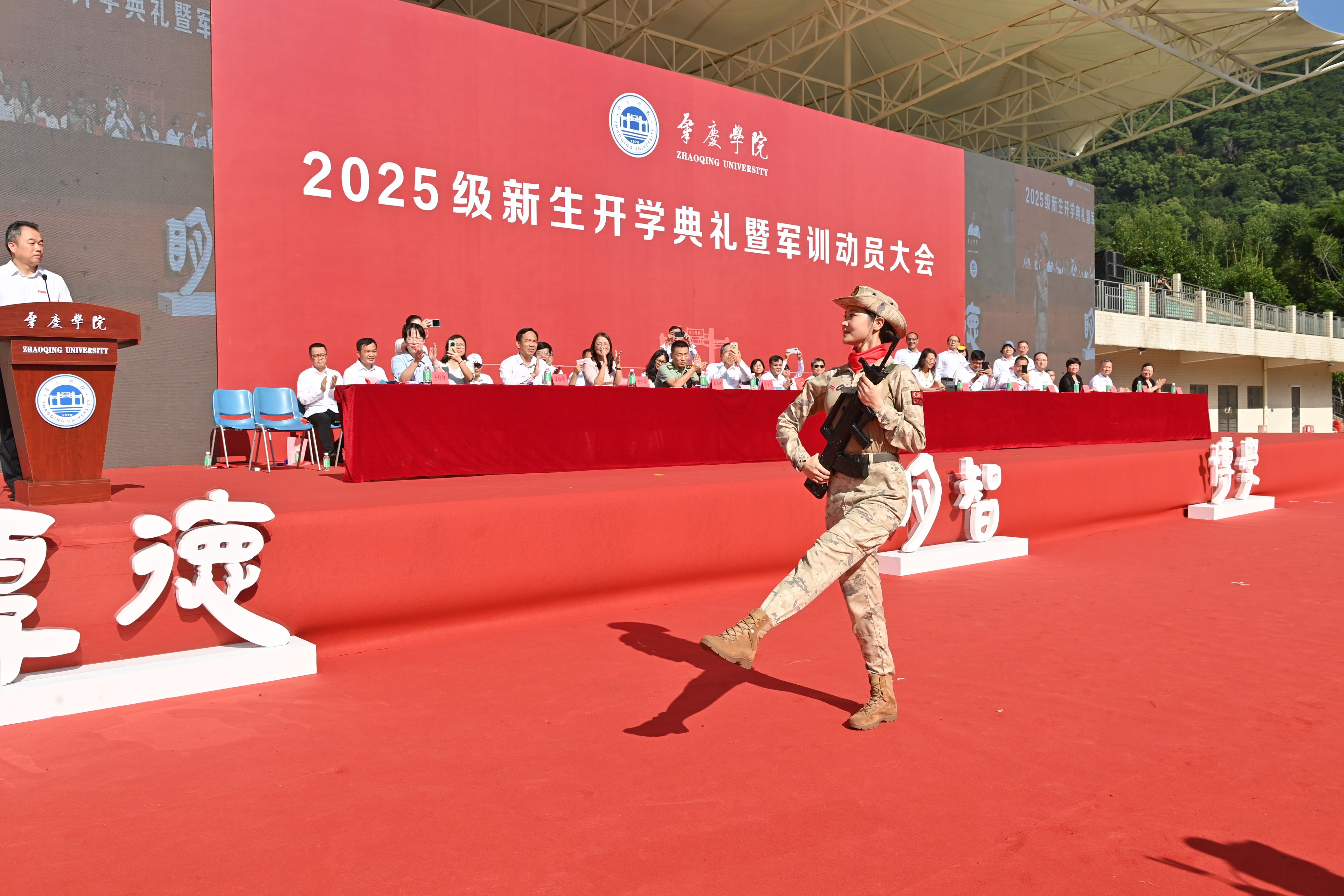 本网讯 9月12日,肇庆学院2025级新生开学典礼暨军训动员大会在第二运动场举行。校党委书记谢冠华,校长李琴,副校长肖起清、唐冬冬、胡文涛,纪委书记、省监委驻肇庆学院监察专员王克俭,肇庆军分区战建处上校处长吴燕锋,党委委员、党政办公室主任、宣传统战部部长陈前、以及各二级学院党政主要领导在主席台就坐。相关职能部门主要负责人、各二级学院行政教辅人员及2025级本硕新生参加。大会由肖起清主持。