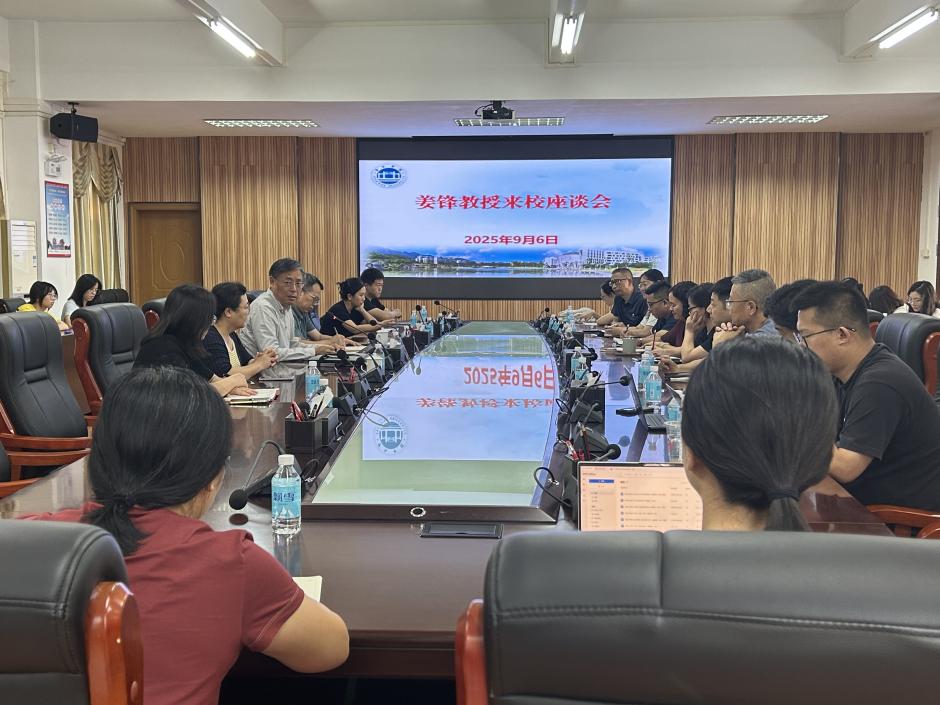 谢冠华与姜锋教授进行了亲切深入的交流,谢冠华详细介绍了学校在优势学科深耕、交叉学科培育以及学科团队建设等方面的发展情况,重点提及近年来学校在学科建设中取得的成果,并代表学校全体师生,感谢江锋教授长期以来对学校学科建设工作的大力支持与专业指导,强调正是得益于这样高水平的外部指导,学校才能在学科布局优化、人才培养模式创新等关键领域不断取得突破,为后续发展奠定坚实基础。