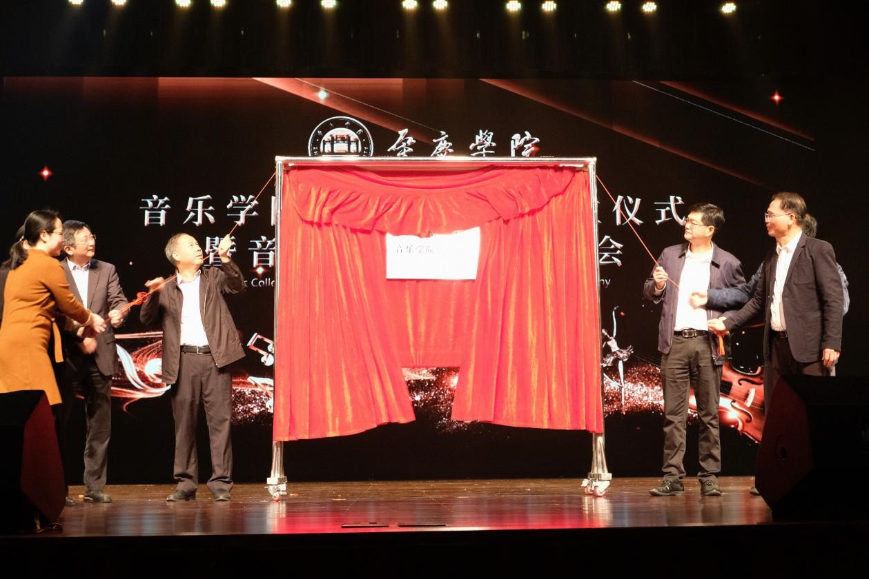 学校领导与校友代表共同为音乐学院校友分会成立揭牌。新任校友分会会长植可焕为音乐学院教师代表张春阳、牛飒飒等及校友代表、校友分会副会长梁明才,副秘书长梁朝伟、赖卓斌,常务理事梁少虹等颁发聘书与牌匾。