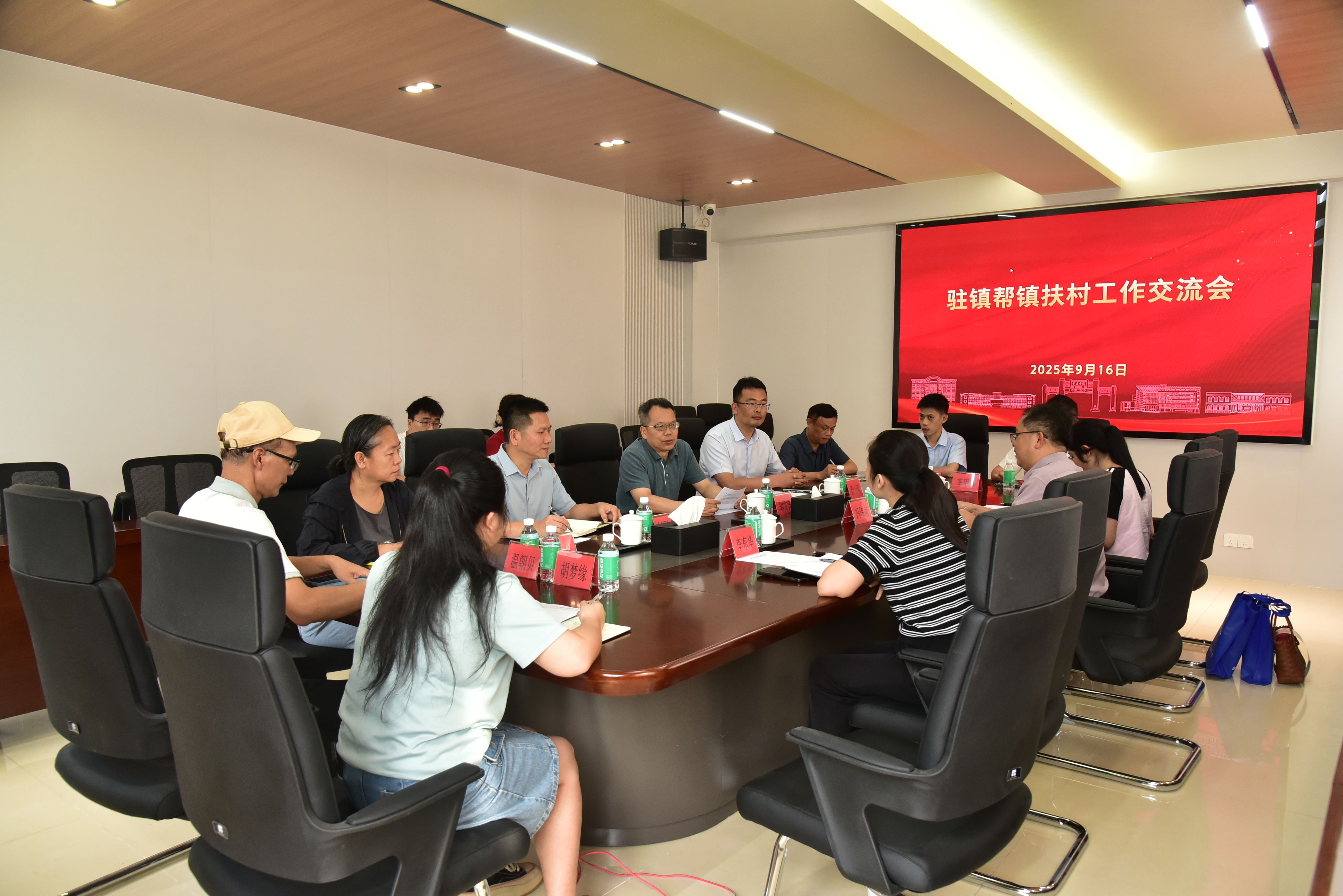 本网讯 9月16日下午,学校召开驻镇帮镇扶村工作交流会。副校长胡文涛,德庆县政协副主席、播植镇党委书记冯伟南,播植镇党委副书记、镇长李东华出席会议,相关职能部门负责人及帮扶项目组成员参会。