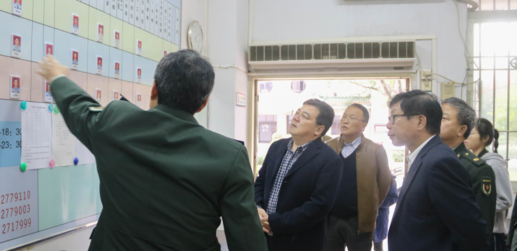 本网讯 1月5日,省教育厅、省综治办、省公安厅“平安校园”考评组莅临我校,对我校“平安校园”创建工作进行考察。教育厅安保处副处长江存余担任考评组组长,校长和飞、校党委副书记叶峥嵘陪同。