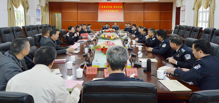 本网讯 12月19日,广东警官学院党委书记张文彪、党委副书记李华振一行到访我校,双方共同交流探讨高校转型发展经验。校党委书记曾桓松、校长和飞会见客人,党委委员、党办院办主任朱为鸿,党委委员、教务处处长丁孝智及相关职能部门负责人参加。