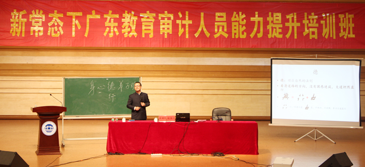 华南师范大学客座教授程五一、广东省教育厅审计室干部李赞担任本次培训班主讲人。程五一以《修身与审计》为主题,阐明了修身对于审计工作人员的重要性,指出审计纪律是审计人员严格自律的准绳,审计人员要严以律己,慎独慎微,做到客观与公正相结合。李赞从资产管理、科研经费管理,校属企事业管理等方面介绍了教育系统审计工作的情况。