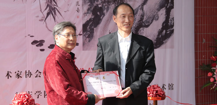 中国美术家协会理事、广东省美协专职副主席兼秘书长王永,肇庆市文联主席朱英中,广东省美术家协会副主席、中国画学会理事、香港港澳台美协主席司徒乃钟,校党委书记曾桓松,校长和飞等领导出席开幕式,来自开平国画会、北京芥子园画院开平分院、香港苍城画会、香港苍城画院、香港广州书画会的代表及我校师生参加。