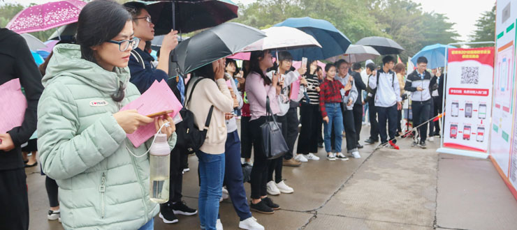 本网讯 11月19日,肇庆市2018届高校毕业生供需见面会在我校举行。此次招聘会由肇庆市人力资源和社会保障局主办,我校和肇庆市人才服务管理办公室共同承办,广东省人才市场协办,旨在贯彻落实党的十九大精神,打造毕业生和用人单位的双选平台,推动高校毕业生更高质量更充分就业。