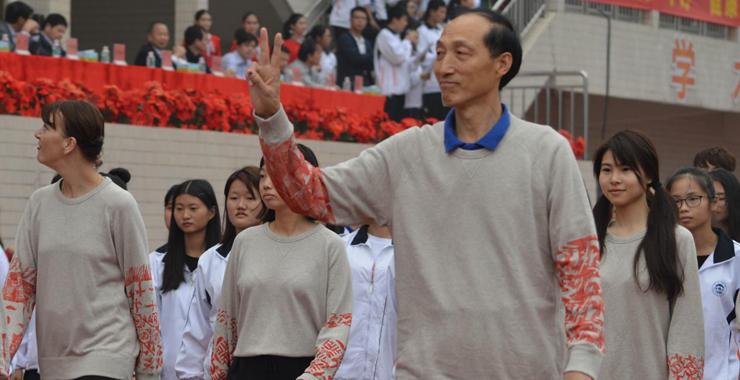 新加入砚园大家庭的中德设计学院,是我校首个中外合作办学的学院,虽然刚成立不久,但阵容很强大。我们的和飞校长兼任中德设计学院中方院长。看,学生自行设计的队服,上边吸睛的红色图腾可是学生的创意,校长和飞摆了个胜利的手势,士气满满呀!