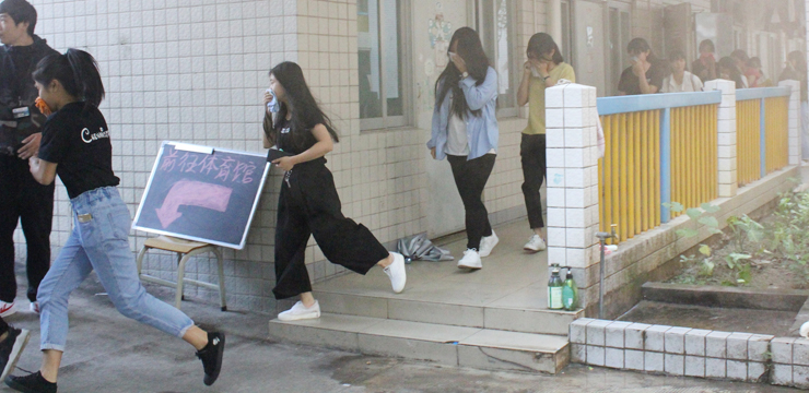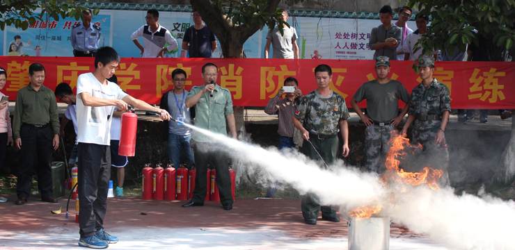 此次消防演练主要针对在四区、五区、八区以及十四区宿舍所居住的全体学生。上午十点,相关人员在指定地点释放烟雾,拉响火灾警报,模拟火灾发生现场。学生听到警报后,按照指示,安全有序地撤离现场,全部到达指定集合地点。此外,我校还安排安全救护环节,模拟对受伤人员安全救护工作,并就消防器材的使用方法为学生进行现场演示。