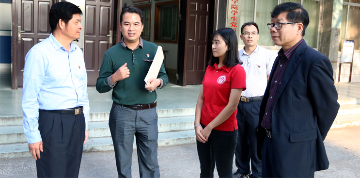 曾桓松表示,我校一直以来认真学习贯彻党的十八大及党的十九大会议精神,深入学习贯彻习近平总书记系列重要讲话精神和治国理政新理念新思想新战略,在“两学一做”“解放思想、实干兴肇”等实践活动中,把从严治党各项任务落实到推进学校事业发展上来。近年来,我校着力加强和创新党建工作,培育党建品牌,“党建育才工程”项目先后被评为肇庆市组织工作“十大品牌”和广东省高校实施抓基层党建创新十个优秀书记项目。以“立德树人”为根本,我校党政班子形成干事创业的合力,推进学校事业发展跃上一个个新台阶。当前,我校扎实做好基层党建提升年活动,进一步选树党建工作示范点,加强党建活动阵地,并根据中央和省思政工作会议精神,贯彻落实高校学生党建工作创新,优化学生党支部设置,按有利于开展党员教育管理服务活动的原则,在按年级、专业设置学生党支部的基础上,根据实际需要探索依托公寓、社团、学生机构、实习实训基地、卓越人才班等建立党支部,实行党员组织关系一方隶属,参加多重组织生活的模式,实现学生党员活动网格化,努力构建“纵向到底、横向到边”的高校学生党组织体系,以实现基层党组织的全覆盖,全面做好大学生思想政治教育工作。