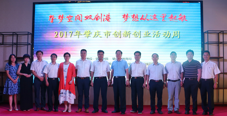 本网讯 9月22日,2017年肇庆市大众创业万众创新活动周暨“肇梦空间双创港”基地成果展在我校大学科技园开幕,省科技企业孵化器协会秘书长刘长虹、副校长林俊睦、市教育局副局长罗永通等出席活动,教务处、就业处等相关职能部门负责人参加。