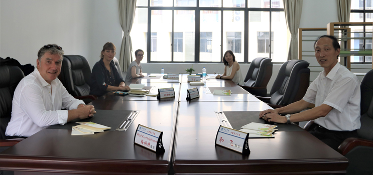 本网讯 9月21日,德国富克旺根艺术大学校长梅纳特一行考察我校中德设计学院教学工作,并举行座谈会。校长和飞、副校长林俊睦出席。双方就中德设计学院的招生、教学等方面工作展开交流,共促发展。