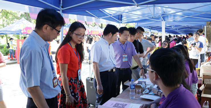 在忙碌的迎新工作中,校党委书记曾桓松、校党委副书记叶峥嵘走进迎新现场,指导查看现场工作,慰问迎新工作人员和志愿者。校领导来到每一处迎新点前,听取迎新工作介绍,询问迎新工作进展,并与在场的家长交谈,向迎新人员的辛勤工作致以问候。16日下午,校领导还分别深入主校区和星湖校区的新生宿舍,看望新生和家长,与他们亲切交谈,鼓励新生尽快适应大学生活,祝愿他们在砚园里快乐生活与学习,表达出学校的浓浓关爱。