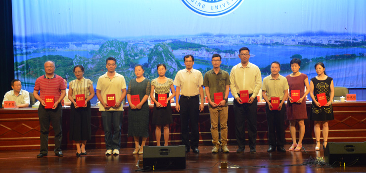 大会上,获得上一年度“第八届广东省高校教学名师奖”“肇庆学院优秀教学成就奖”“肇庆学院教学名师奖”“肇庆学院优秀教学成果奖”“肇庆学院科研十佳”“肇庆学院陈伟南科研奖励基金”“肇庆学院优秀教学管理单位” “肇庆学院教学工作优秀奖”“肇庆学院实验室工作优秀奖”等奖项的先进个人、团队和单位代表分别上台领奖。教师代表、省级教学名师获得者郝向英教授作获奖发言。校领导为获奖代表颁奖并合影留念,台下师生向获奖者致以热烈掌声,表彰大会在肃穆而欢快的氛围中圆满结束。