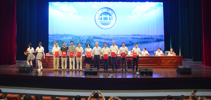 本网讯 9月6日,我校隆重举行教师节表彰暨师德建设主题教育月动员大会,对优秀教师进行表彰奖励,并启动主题为“立德树人,做好学生的引路人”的师德建设活动,号召全体教师向先进榜样学习,提升师德师风水平,提高教学科研能力,加快建设特色鲜明的高水平应用型综合大学,以优异成绩迎接党的十九大胜利召开。