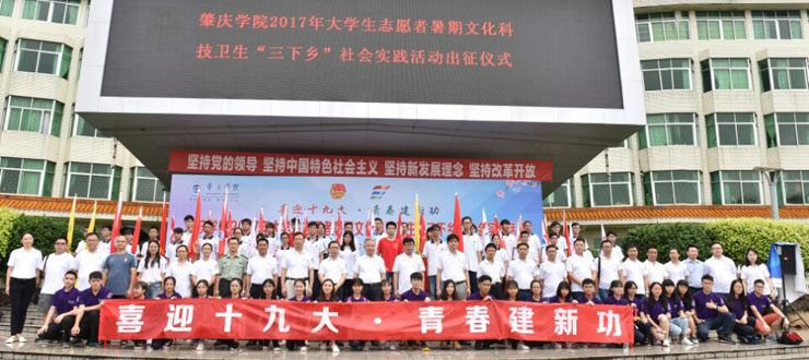 近年来,大学生志愿者暑期“三下乡”社会实践活动已成为我校应用型人才培养的重要抓手,实践育人效果明显,先后十五次获评“全国大中专学生志愿者暑期‘三下乡’社会实践活动优秀组织单位”。今年,我校根据“按需设项、据项组团、双向受益”的原则,组建了61支重点服务团队1500余名志愿者,以服务地方经济社会发展和服务青年学生成长成才为主线开展活动。活动特别以学习宣传习近平总书记系列讲话精神、喜迎党的十九大、中国人民解放军建军90周年、中国人民全面抗战80周年、香港回归20周年和肇庆市创文攻坚等重要节点为契机,组建了10余支重点社会实践队伍,分别开展寻找红色足迹、“情义两地行”粤港大学生志愿服务合作营、井冈山大学生暑期理想信念教育、新疆籍学生回乡发声亮剑宣讲、我为美丽乡村绘蓝图——广东大学生南粤美丽乡村环境整治规划公益志愿行动等多种形式的“三下乡”社会实践项目。