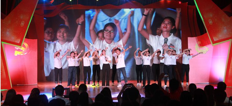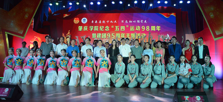 本网讯 为纪念“五四”运动98周年暨共产主义青年团成立95周年,5月12日晚,我校举办“青春喜迎党的十九大,不忘初心跟党走”为主题的“五四”运动纪念晚会。校党委书记曾桓松,校党委副书记叶峥嵘、黄劲松,共青团肇庆市委员会书记唐莹出席晚会,相关职能部门负责人及师生代表近千人参加。晚会上学子以精彩的表演展现了心怀祖国、追逐梦想、服务社会的风采。