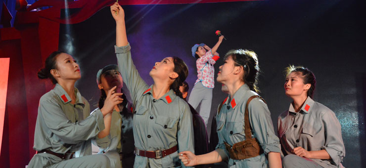 在晚会的序章环节中,全体起立,奏唱国歌并宣读入团誓词,字句铿锵有力,寄托了砚园师生深切的爱国情怀。