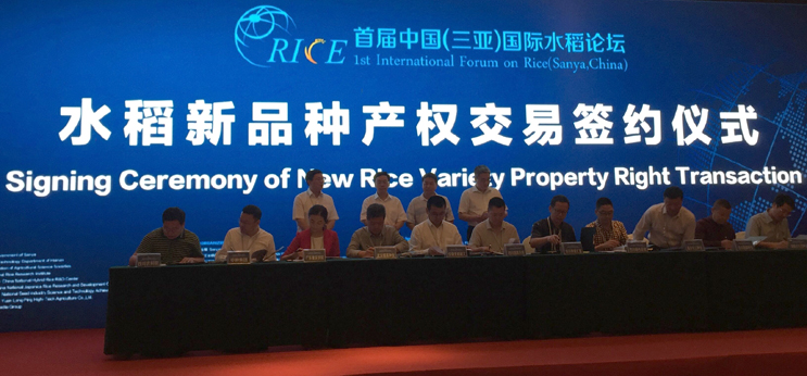 本网讯 由袁隆平院士发起并亲自参与的首届中国(三亚)国际水稻论坛4月11日在海南召开。我校作为优质水稻品种所有权出让方,应邀参加作为论坛其中一项重要活动的水稻新品种(组合)权等育种成果产权交易对接会,并现场和中国种子集团有限公司签约。