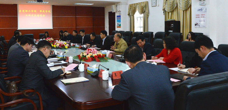 会上,曾桓松、和飞介绍了我校的最新发展概况,并重点向客人介绍了我校以“学科专业学院制、生活社区书院制”为理念打造大学书院文化,加强大学生思想政治教育,促进大学生健康成长的工作情况。他们强调,书院自诞生之日起,就通过不断丰富文化内涵,增强文化服务功能,切实履行以创新方式加强大学生思想政治教育的使命,为大学生适应社会和提高素质提供良好的教育平台,使大学生通过潜移默化的方式接受传统文化和时代精神的熏陶,达到“随风潜入夜,润物细无声”的育人效果。