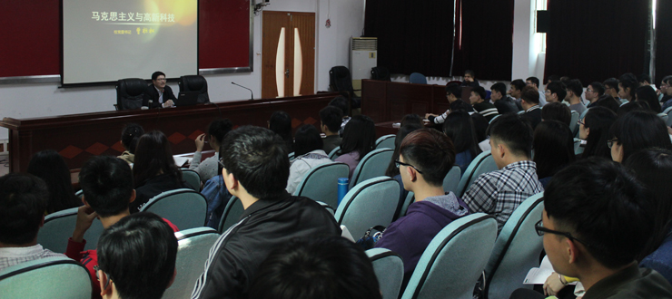 曾桓松以《马克思主义与现代高新技术》为主题展开课堂。他通过展示社会从蒸汽时代到电气时代,再到电子技术时代的迅猛变化,说明现代高新科技的迅猛发展对世界生产关系产生深远的影响。课堂上,曾桓松运用案例、数据、影像资料,深入浅出地剖析了现代高新科技的深入发展将为马克思主义经典作家所展望的未来社会——共产主义社会创造直接的必要条件,引导同学们深刻理解高新科学技术的进步促进人类社会发展的内涵。同时,他结合马克思主义经典作家所展望的共产主义社会的四个基本特征,进一步阐述高新科技发展推动生产力进步,从而实现共产主义的愿景。
