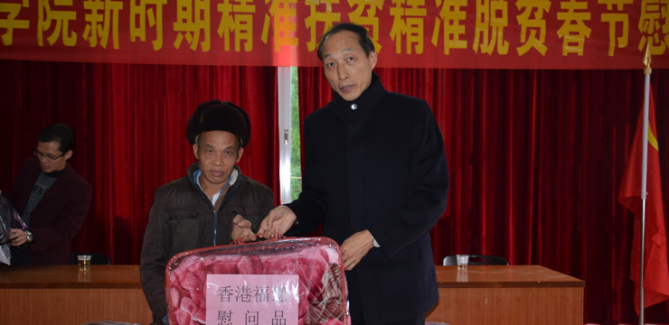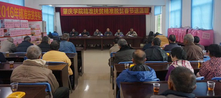 本网讯 1月17日,曾桓松、和飞、叶峥嵘、黄劲松、周苏平、王忠、林俊睦等全体校领导冒着寒潮,来到我校新时期精准扶贫点广宁县横山社区开展送温暖活动,向当地无劳动能力低保户和五保户发放防寒物资,传递全体师生对于贫困农户的浓浓爱心。校党委委员、机关职能部门负责人参加慰问。