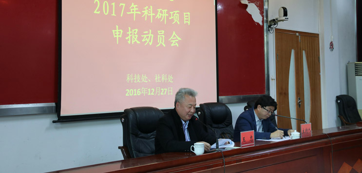 本网讯 为了让广大教师了解2016年科研立项和项目经费情况,动员大家在新的一年积极申报科研项目,12月27日,我校举行2017年科研申报动员会。副校长王忠出席会议。