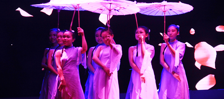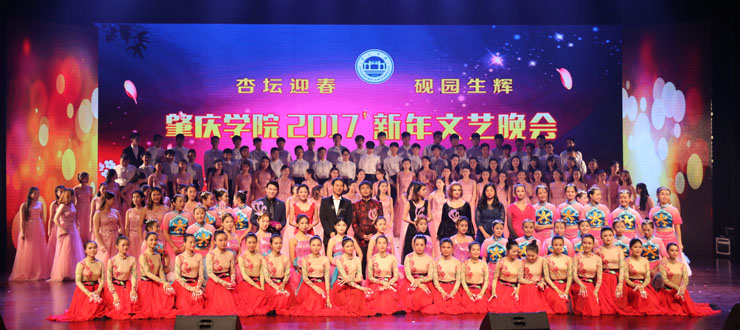 管乐合奏《春节序曲》拉开晚会的序幕,轻松而欢快的节奏把观众带到新年的喜悦中。继而,另一曲管乐合奏《小匈牙利狂想曲》以恢弘而磅礴的演奏点燃全场气氛。舞蹈《丁香情》和《豆蔻年华》蕴含特色,将大学生的青春与活力展现得淋漓尽致。而舞蹈《月影鼓乡随》又以俏皮的表演表现了少女的纯真和活力,给观众带来纯美的享受。筝琶二重奏《春江花月夜》及独唱《独上西楼》古典韵味浓厚,以精湛的技巧和高超的唱功将观众带到浓郁的诗意当中。群舞《砚魂》以粗犷而极具力量感的表演方式再现了端砚文化史诗般的发展历程。长笛独奏《C.西尔第—威尼斯狂欢节》惊艳全场,极具异域风情的曲调将场上场下一齐带到那美丽的异域世界中。独唱《老师,我总是想起你》为全体教师送去了美好的祝愿,表达了学生对老师的深深感恩。小提琴独奏《红旗飘飘》激起爱国热情,感人肺腑。最后,晚会在合唱《对面的女孩看过来》《感恩的心》的美妙歌声中圆满落下帷幕。肇庆学院人在辞旧迎新之际,从新的起点出发,大踏步地迈向美好的明天。