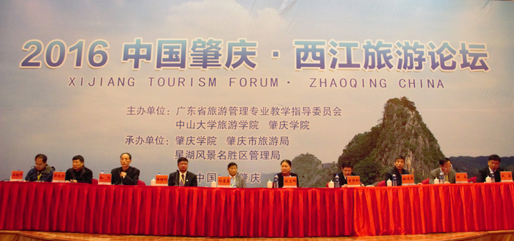 本网讯 12月17至18日,由我校和广东省旅游管理专业教学指导委员会、中山大学旅游学院共同主办的2016中国肇庆·西江旅游论坛在我市举行。市委常委、宣传部长梁志强,副市长陈宣群等市领导,校党委书记曾桓松、校长和飞等校领导,中国科学院教授郭来喜、中山大学教授保继刚、厦门大学教授彭兆荣等旅游学界的顶尖学者,以及来自全国40多所高校的专家学者和行业企业代表共120多人出席本次论坛的相关活动。曾桓松主持开幕式。