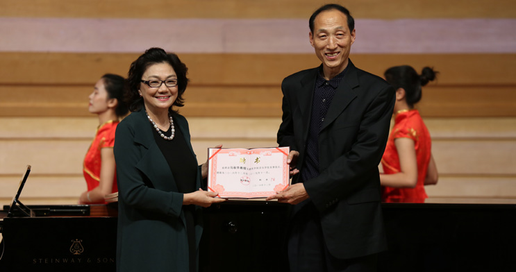 据了解,马秋华从事声乐教学和研究工作至今已34年,在美声、民族、通俗三种唱法的声乐教学与实践中均取得了丰硕成果,曾多次担任中国音乐“金钟奖”、文化部“文华奖”以及中央电视台“全国青年歌手电视大奖赛”的评委,获得“全军育才突出贡献奖”、“为国防教育事业做出贡献奖”、“第三届全国中青年德艺双馨文艺工作者奖”、《世界英才》十大风云人物杰出贡献奖、第三届国际华人艺术节“突出贡献奖”等多个重要奖项。她的学生有近百名在国际、国内声乐大赛中获奖,其中不乏众多观众熟悉和喜爱的歌唱家,如戴玉强、张也、祖海、王莉、王丽达等。当晚,马秋华受聘为音乐学院名誉院长,和飞向其颁发聘书。