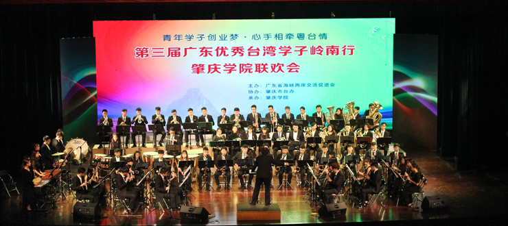 本网讯 11月28日晚,第三届广东优秀台湾学子岭南行肇庆学院联欢会在艺术大楼剧场举行。广东省台办刘小青处长、肇庆市台办邹小玲主任,校长和飞、校党委副书记叶峥嵘等领导出席联欢会。