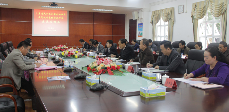 本网讯 11月22日至23日,由广东外语外贸大学副校长刘海春、就业指导中心主任谢秀兰,广东技术师范学院招就处处长李向明,佛山科学技术学院教务处处长古广灵,省就业指导中心调研员曹志超等五位专家组成的工作组到我校进行广东省大学生创新创业教育示范校评审工作。