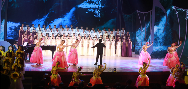 由我校音乐学院合唱团带来的合唱《肇庆美》拉开了开幕式的序曲,悠扬的歌声让观众感受到肇庆的美丽。由北京市密云区青少年宫合唱团带来的《绽放》以铿锵有力的歌声,展现了青年的朝气与蓬勃;由浙江省嘉兴市南湖区机关合唱团带来的《念故乡》勾起了观众对故乡的思念;由香港紫荆花混声合唱团带来的《月亮代表我的心》唱出了情怀依旧;由广州老干部爱乐合唱团带来的《旗正飘飘》以慷慨激昂的歌声,展现出中华民族的正气凛然。最后,由我校合唱团带来的《肇庆等你来》以欢快激情的表演,表达了肇庆人民欢迎五湖四海朋友前来做客的热情,同时为本场晚会画上圆满的句号。