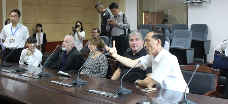 本网讯 11月17日,校长和飞会见了到访的德国富克旺根艺术大学校长Kurt Robert Mehnert、副校长Herr Fricke、富克旺根艺术大学亚洲中心主任杨林一行,双方就合作办学事宜展开友好洽谈。副校长林俊睦陪同。