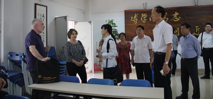洽谈开始前,客人参观了校园,充分感受我校在人才培养、校园文化建设中的成果。他们先后到教师发展中心、艺术大楼功能室、大剧院、美术馆、博学书院等地实地参观,对我校蓬勃的发展面貌给予高度评价。洽谈结束后,双方在艺术大楼为肇庆学院中德工业设计楼揭牌,副市长陈宣群参加。