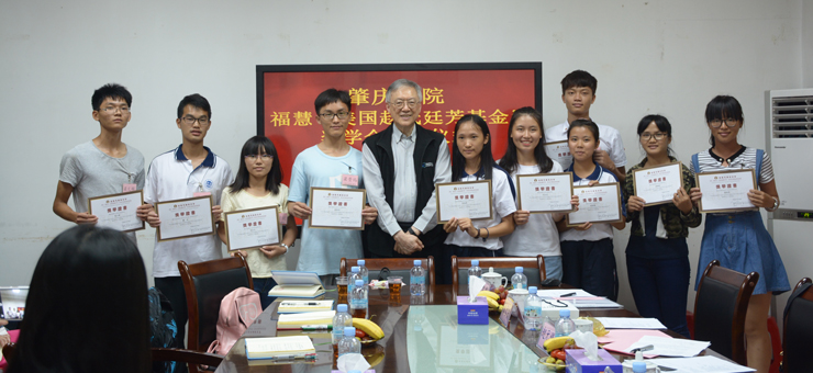 揭牌仪式结束后,严崔常敏女士、赵元修先生及夫人赵辜怀箴女士、香港福慧慈善基金会董事杜佩玲居士为获得本年度福慧美国赵氏廷芳基金奖助学金的40名同学颁发奖助学金。获奖同学纷纷发表感言,对福慧基金会多年来的关爱表示衷心的感谢。