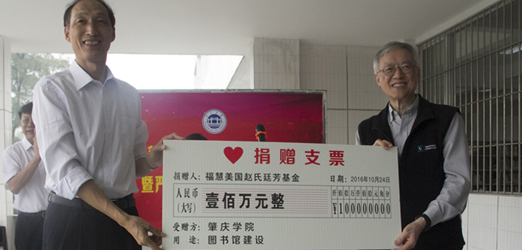 和飞代表我校接受美国赵氏廷芳基金董事长赵元修先生捐赠的图书馆建设资金100万元,并对香港福慧慈善基金会和赵氏廷芳基金一直以来给予教育事业的支持致以崇高敬意。他鼓励师生们奋发图强,为推动学校发展努力拼搏,希望受助学子自强自立,实现梦想。