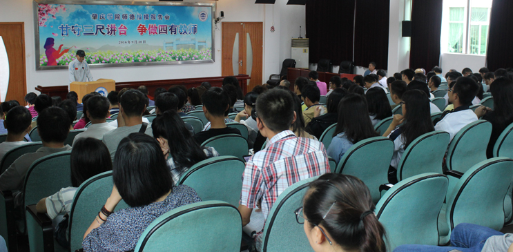 本网讯 9月30日,我校举行以“甘守三尺讲台,争做四有教师”为主题的师德楷模报告会,张新安、黎保荣、周丽和侯晓辉等四名优秀教师应邀分享对“师德”的看法,充分展示爱岗敬业、为人师表的形象和风采。宣传部、工会等部门负责人,各二级学院师生代表出席活动。