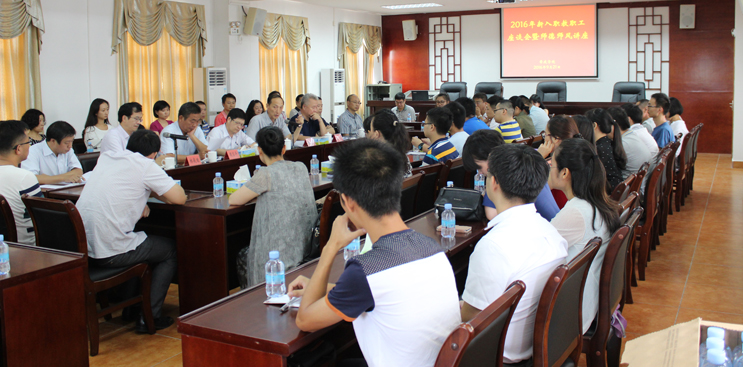 本网讯 9月21日,我校组织今年来校工作的78名新进教职工举行座谈暨师德师风讲座。校党委书记曾桓松,校长和飞,副校长周苏平、王忠、林俊睦出席。