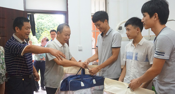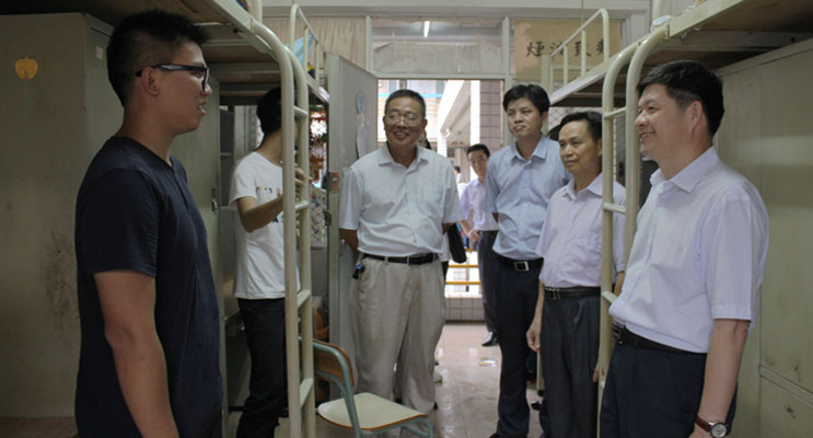随后,校领导曾桓松、叶峥嵘、黄劲松、周苏平携各职能部门负责人共同深入部分新生宿舍,看望新生。在宿舍里,他们亲切与新生聊天,了解新生家庭情况及适应情况,并与新生畅谈学习、家庭、校园生活等话题,鼓励新生早日进入大学生活状态,明确未来发展的职业规划。校领导同时对今年我校录取的新疆地区学生表示亲切慰问,鼓励他们融入大学,学有所成。