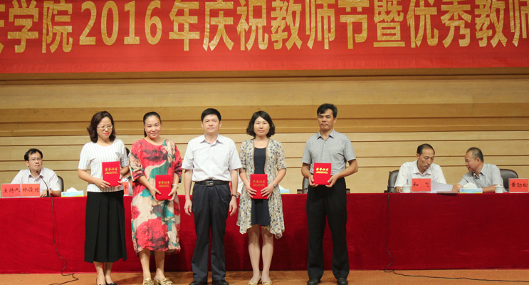 本网讯 9月9日,在第32个教师节来临之际,我校举行教师节庆祝及表彰大会,对辛勤工作的教职员工送上节日的美好祝愿。曾桓松、和飞、叶峥嵘、黄劲松、周苏平、王忠、林俊睦等校领导,中层干部,师生代表参加大会。