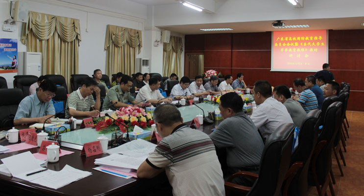本网讯 7月12日,广东省高校国防教育指导委员会会议暨《当代大学生军事教育教程》教材研讨会在我校召开。省高校国防教育指导委员会主任曾峥主持会议,我校校党委书记曾桓松、校党委副书记叶峥嵘、省高校国防教育指导委员会全体成员、暨南大学出版社及各有关高校人员参加了会议。