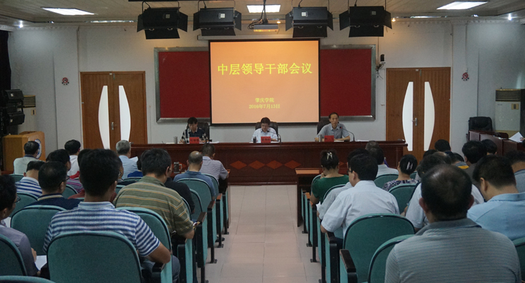 本网讯 7月13日,校党委书记曾桓松主持召开本学期最后一次中层干部会议,围绕2016年学校的多项重点工作作总结和谋划。校领导和飞、叶峥嵘、黄劲松、周苏平、王忠、林俊睦,全体中层领导干部出席会议。