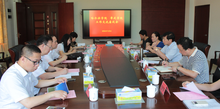 本网讯(记者 张国荣 罗坤生)7月8日,校长和飞见了到访的哈尔滨学院副校长王利民一行。校党委副书记叶峥嵘与客人围绕大学生就业创业、教职工人事管理、校园文化建设、校企合作等工作展开交流。党办校办、就业处、粤桂合作试验区研究院等部门负责人出席交流会。