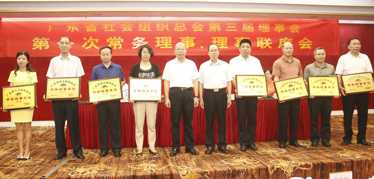 本网讯(基金会 通讯)近日,广东省社会组织总会召开第三届理事会第一次常务理事及理事联席会议,我校教育发展基金会理事长沈钦萍出席会议,并接受总会颁发的常务理事单位牌匾。