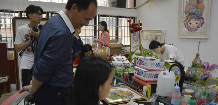 座谈开始前,叶峥嵘等陪同客人实地考察了美术馆、创意产品实验室、微灵信息科技有限公司、创星谷创新创业孵化基地、现代装饰艺术工作室等大学生创新创业孵化基地。