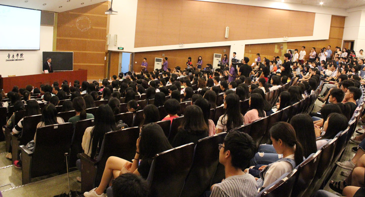 整场讲座中,程教授激情澎湃,妙语连珠,他不时将讲课的精华以潇洒飘逸的板书展现在黑板上,潇洒的书法与精彩深刻的讲解结合,彰显出名家的风采。其中,他语重心长地强调,青年学子要以善良作底色,存进取之志,怀爱国之情,在风华正茂的时代奋力拼搏,发挥出自己的人生和社会价值。