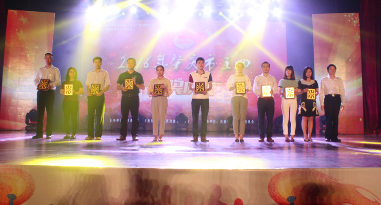 晚会前,现场共唱国歌,梁志强、曾桓松为荣获全国、全省及市的先进团体和个人颁发证书。