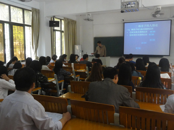 和飞与2015级政治学与行政学专业同学一起,听了高春海老师讲授的《中国政治思想史》课程“韩非子理论”内容,课后与授课教师进行了交流,对同学们认真听讲的学习态度给予充分肯定。