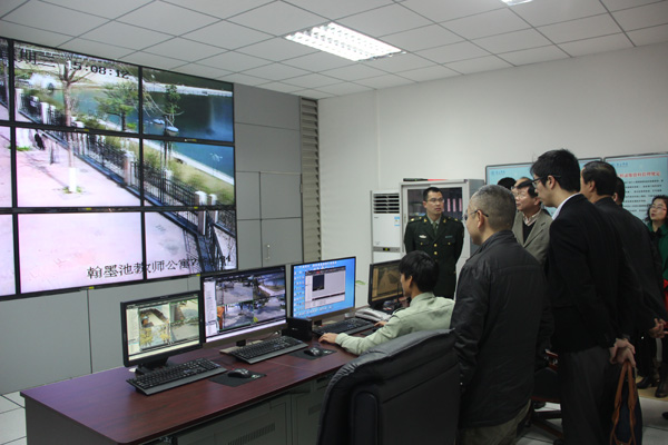 汇报会结束后,省厅督查组到学校监控室检查校园安保情况,随后对第四食堂、博学书院、理工大楼进行了实地考察,详细了解学生的学习及生活环境情况。