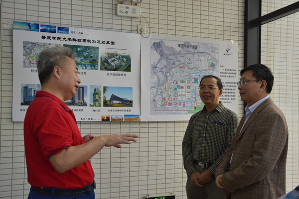 王忠介绍了科技园的建设历程和园区建设定位。他表示,在校党委正确决策下,我校结合肇庆市主导产业发展方向构建大学科技园,同时将中巴软件园建设成以企业运营为特色的科技服务机构。同时,我校还结合肇庆本地环境,加大了在农业、林业、工科业等产业方面的技术研发,通过与政府合办南药基地,开办端砚设计等途径拓宽就业渠道,提升产品附加值,服务地方经济社会发展,希望政府对科技园用地加大保护力度,多渠道为园区提供创业平台。