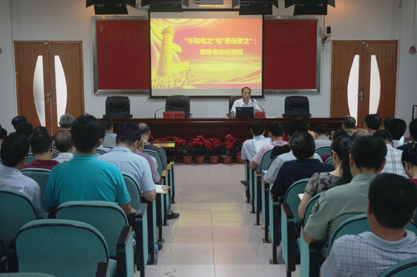 和飞在《“不知有之”与“亲而誉之”:领导如何用权》的专题报告中,首先通过详细论述“权力和权利的联系与区别”,阐明了“什么是权力”的基本问题,正确认识权力,明确权力来源。他指出,落实“三严三实”要求,严以用权是关键。权力是把双刃剑,正确用权就能为人民造福,滥用权力就会损害群众权益,损害党和政府形象。无论在高校还是在地方,各级领导干部手中都掌握着或大或小的权力,“修身”和“律己”主要是为用好权。权力和权利不同,权力是有权支配他人的强制之力,包括政治上的强制力量和职责范围内的支配力量。权利则一般是指赋予人们的权力和利益。“严以用权”首先要正确理解权力,树立正确的权力观,做到权为民所赋、权为民所用、利为民所谋。